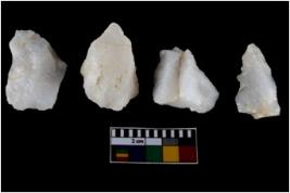 | Description / विवरण | There are n-4 of intact utilized flake cores made up of Quartz. Some of them have bulge of percussion and some are flat flakes. |