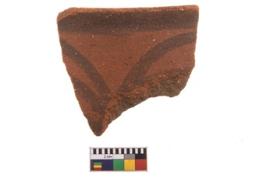 | Description / विवरण | Specimen of black on red ware with decorative geometric Its decorated with two horizontal bands with sets of triple arches painting. |
