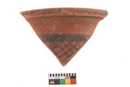 | Description / विवरण | Specimen of potsherd with black decorative geometric painting. Type Black on Red Ware . |