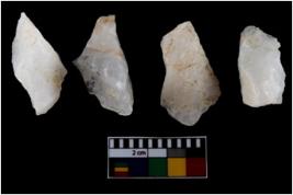 | Description / विवरण | There are n-4 of intact utilized flake cores made up of Quartz. Some of them have bulge of percussion and some are flat flakes. |