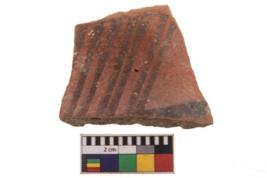 | Description / विवरण | Specimen of black on red ware with decorative geometric Groups of oblique strokes set in horizontal bands on the exterior painting. |
