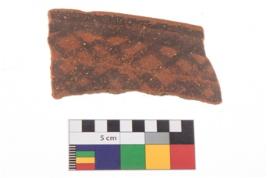 | Description / विवरण | Specimen of potsherd with black decorative geometric Net Pattern painting . |