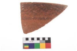 | Description / विवरण | Specimen of potsherd with black decorative geometric Net Pattern painting . |