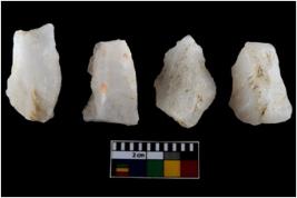 | Description / विवरण | There are n-4 of intact utilized flake cores made up of Quartz. Some of them have bulge of percussion and some are flat flakes. |