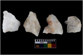| Description / विवरण | There are n-4 of intact utilized flake cores made up of Quartz. Some of them have bulge of percussion and some are flat flakes. |