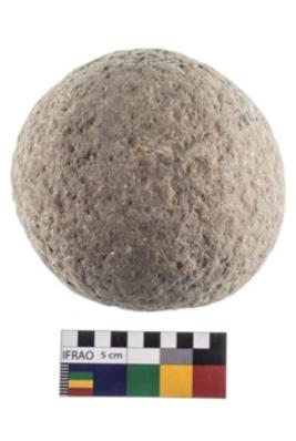 | Description / विवरण | A partially broken specimen of roughly round shaped hammer stone with battered periphery along with the circumference. |