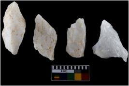 | Description / विवरण | There are n-4 of intact utilized flake cores made up of Quartz. Some of them have bulge of percussion and some are flat flakes. |