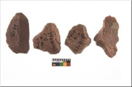 | Description / विवरण | It made up of a short flakes with sides trimmed. Marks of secondary flaking are present on the both the faces. It rained pebbly cortex on one side and irregular thin edge on the other. The dorsal is relatively flat. A patch of cortex near the section which is slanting to the dorsal .It is sub rectangular in shaped. |