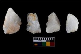 | Description / विवरण | There are n-4 of intact utilized flake cores made up of Quartz. Some of them have bulge of percussion and some are flat flakes. |
