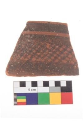 | Description / विवरण | Specimen of potsherd with black decorative geometric Net Pattern painting . |