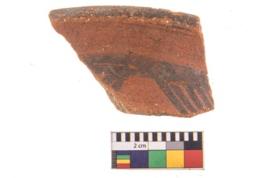 | Description / विवरण | Specimen of potsherd with black decorative geometric painting. Type Black on Red Ware . |