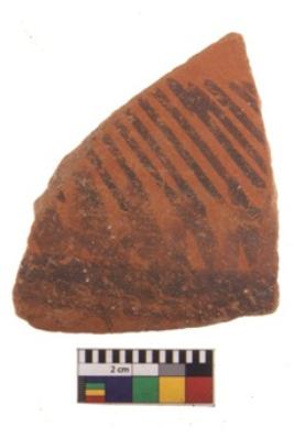 | Description / विवरण | Specimen of potsherd with black decorative geometric painting. Type Black on Red Ware . |