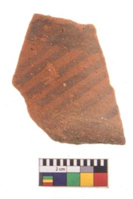 | Description / विवरण | Specimen of potsherd with black decorative geometric painting. Type Black on Red Ware . |