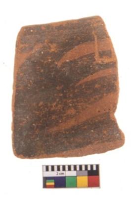 | Description / विवरण | Specimen of potsherd with black decorative geometric painting. Type Black on Red Ware . |