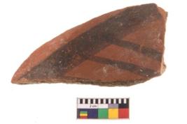 | Description / विवरण | Specimen of black on red ware with decorative geometric Outcurved lines painting. |