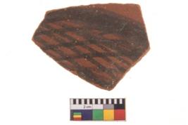| Description / विवरण | Specimen of potsherd with black decorative geometric painting. Type Black on Red Ware . |