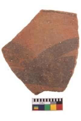 | Description / विवरण | Specimen of black on red ware with decorative geometric Its decorated with two horizontal bands with sets of triple arches painting. |