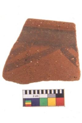 | Description / विवरण | Specimen of potsherd with black decorative geometric painting. Type Black on Red Ware . |