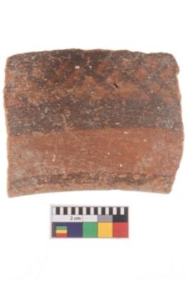 | Description / विवरण | Specimen of potsherd with black decorative geometric Net Pattern painting . |
