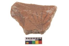 | Description / विवरण | Specimen of black on red ware with decorative geometric Plant motif painting. |