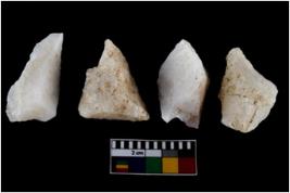 | Description / विवरण | There are n-4 of intact utilized flake cores made up of Quartz. Some of them have bulge of percussion and some are flat flakes. |