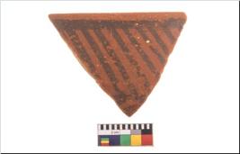 | Description / विवरण | Specimen of potsherd with black decorative geometric painting. Type Black on Red Ware . |