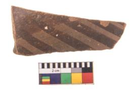 | Description / विवरण | Specimen of potsherd with black decorative geometric painting. Type Black on Red Ware . |