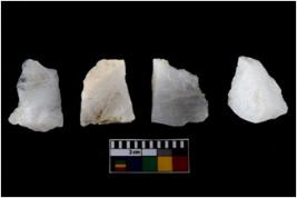 | Description / विवरण | There are n-4 of intact utilized flake cores made up of Quartz. Some of them have bulge of percussion and some are flat flakes. |