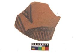 | Description / विवरण | Specimen of black on red ware with decorative geometric Outcurved lines painting. |
