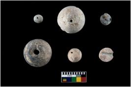 | Description / विवरण | There are n 6 of terracotta beads.The beads are arecanut and cylindrical in shape.One of the spherical bead is half broken. |