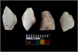 | Description / विवरण | There are n-4 of intact utilized flake cores made up of Quartz. Some of them have bulge of percussion and some are flat flakes. |
