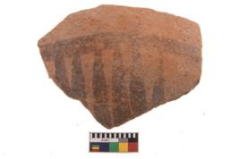 | Description / विवरण | Specimen of black on red ware with decorative geometric Vertical lines painting. |