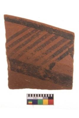 | Description / विवरण | Specimen of potsherd with black decorative geometric painting. Type Black on Red Ware . |