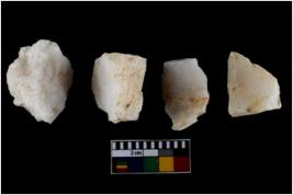 | Description / विवरण | There are n-4 of intact utilized flake cores made up of Quartz. Some of them have bulge of percussion and some are flat flakes. |