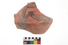 | Description / विवरण | Specimen of potsherd with black decorative geometric painting. Type Black on Red Ware . |