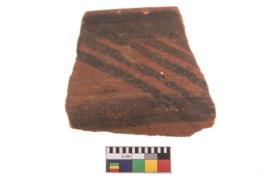 | Description / विवरण | Specimen of potsherd with black decorative geometric painting. Type Black on Red Ware . |