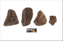 | Description / विवरण | A Sub rectangular flake with wavy thick distal end and broken functional top. It reined pebbly cortex on one side and irregular thin edge on the other. The dorsal is relatively flat. A patch of cortex near the section which is slanting to the dorsal. |