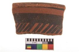 | Description / विवरण | Specimen of potsherd with black decorative geometric painting. Type Black on Red Ware . |