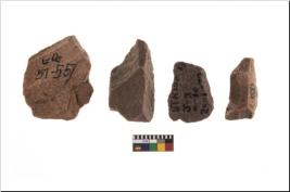 | Description / विवरण | A Sub rectangular flake with wavy thick distal end and broken functional top. It reined pebbly cortex on one side and irregular thin edge on the other. The dorsal is relatively flat. A patch of cortex near the section which is slanting to the dorsal. |