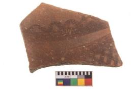 | Description / विवरण | Specimen of potsherd with black decorative geometric painting. Type Black on Red Ware . |