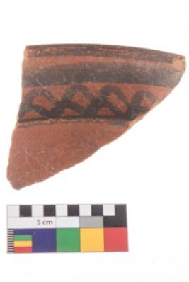 | Description / विवरण | Specimen of potsherd with black decorative geometric painting . |