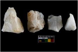 | Description / विवरण | There are n-4 of utilized worked flake cores. Some of them have bulge of percussion and some are flat flakes. |