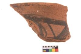 | Description / विवरण | Specimen of potsherd with black decorative geometric painting. Type Black on Red Ware . |