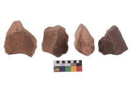 | Description / विवरण | There are n-4 of utilized flake cores. There are multidirectional irregular dominant scar pattern on both dorsal and ventral face of the cores. |