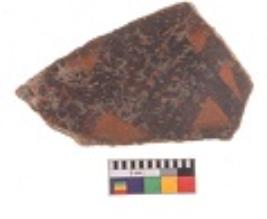 | Description / विवरण | Specimen of potsherd with decorative geometric Diamond set broad horizontal bands painting, Type Black on Red Ware . |