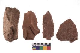 | Description / विवरण | There are n-4 of utilized flake cores. There are multidirectional irregular dominant scar pattern on both dorsal and ventral face of the cores. |