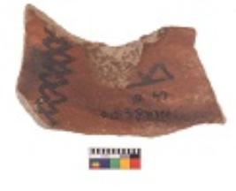| Description / विवरण | Specimen of black on red ware with decorative black pigment. |