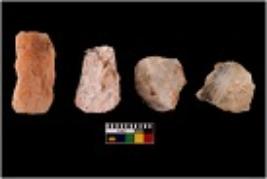 | Description / विवरण | Specimen of cores with visible weathered cortex and few broad fluted marks. Almost all are irregular in shape and size. Most of them are having sharp edges. |