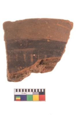 | Description / विवरण | Specimen of potsherd with black decorative geometric painting. Type Black on Red Ware . |