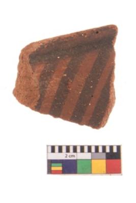 | Description / विवरण | Specimen of potsherd with black decorative geometric painting. Type Black on Red Ware . |